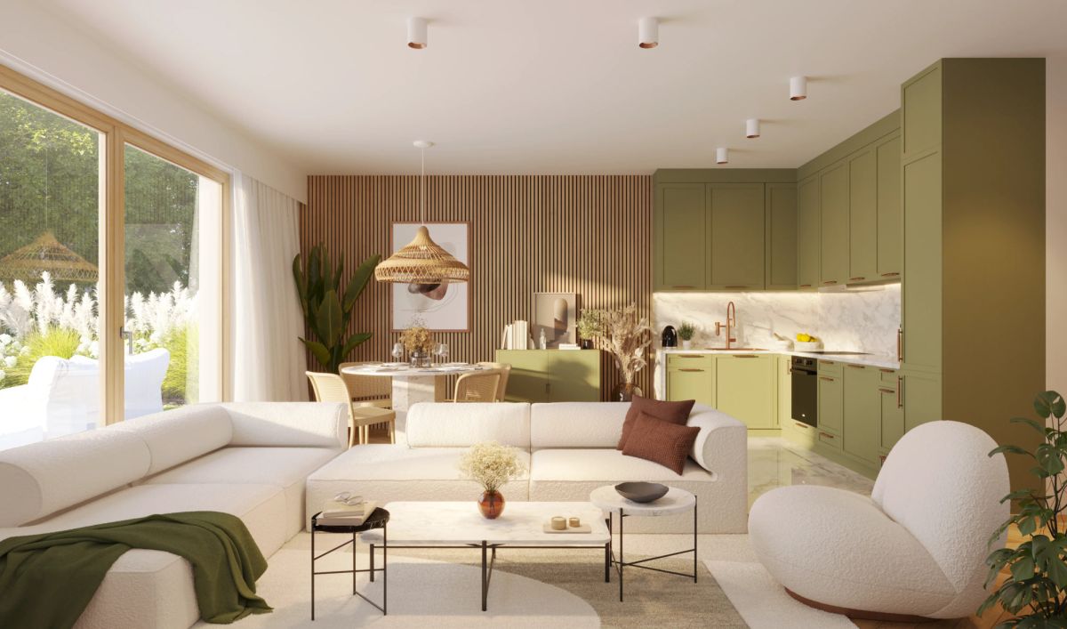- Budynki charakteryzują się elewacją w naturalnych odcieniach beżu, ziemi i roślinności, co sprawia, że prezentują się stylowo przez cały rok.