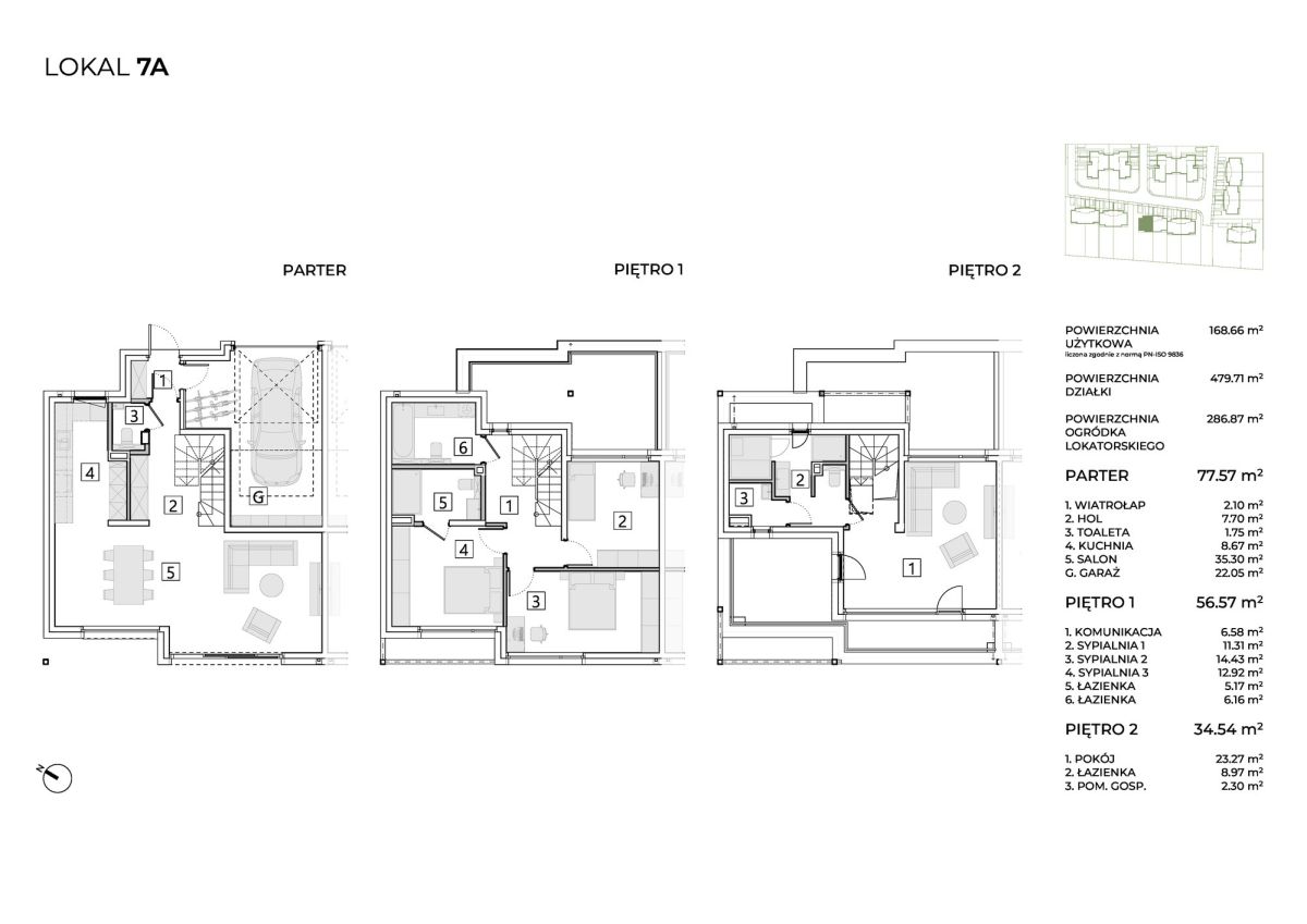 Każdy dom oferuje trzy miejsca postojowe, a w garażu przewidziano przygotowanie pod montaż prywatnej stacji ładowania samochodu elektrycznego.