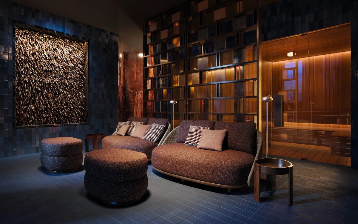 - Rozbudowana strefa wellness wyłącznie dla mieszkańców, obejmująca sauny, pokój masażu i fizjoterapii, tężnię solankową, salę klubową oraz lobby z recepcją.