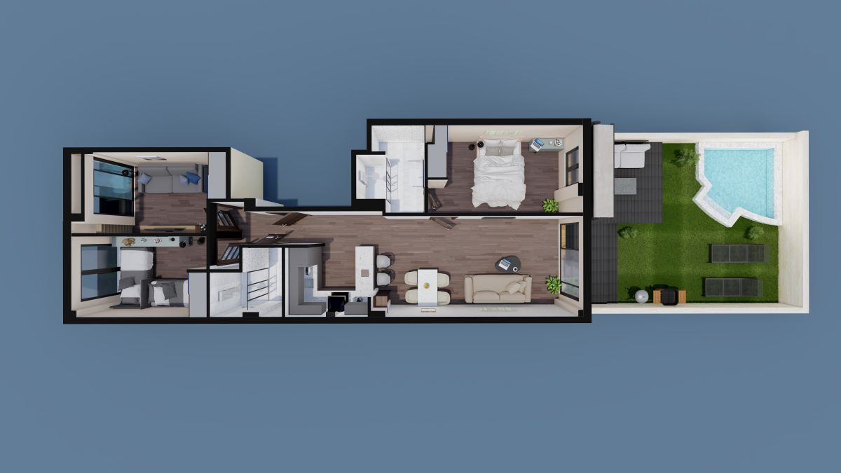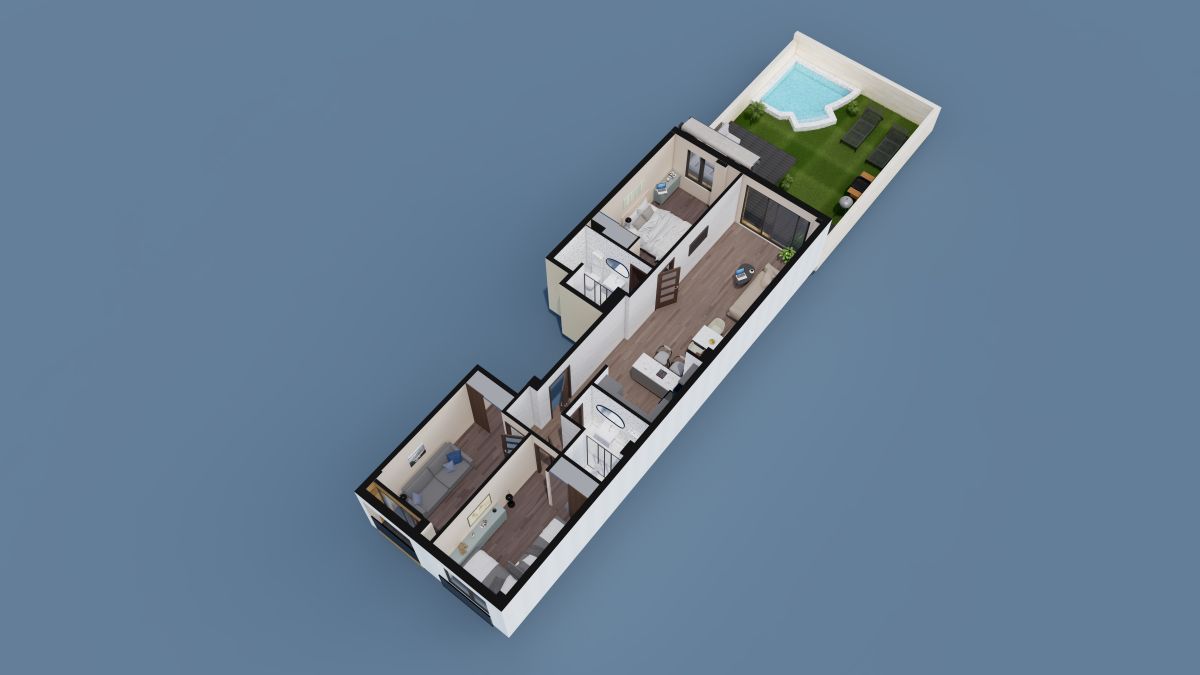 - taras z ogrodem i basenem.