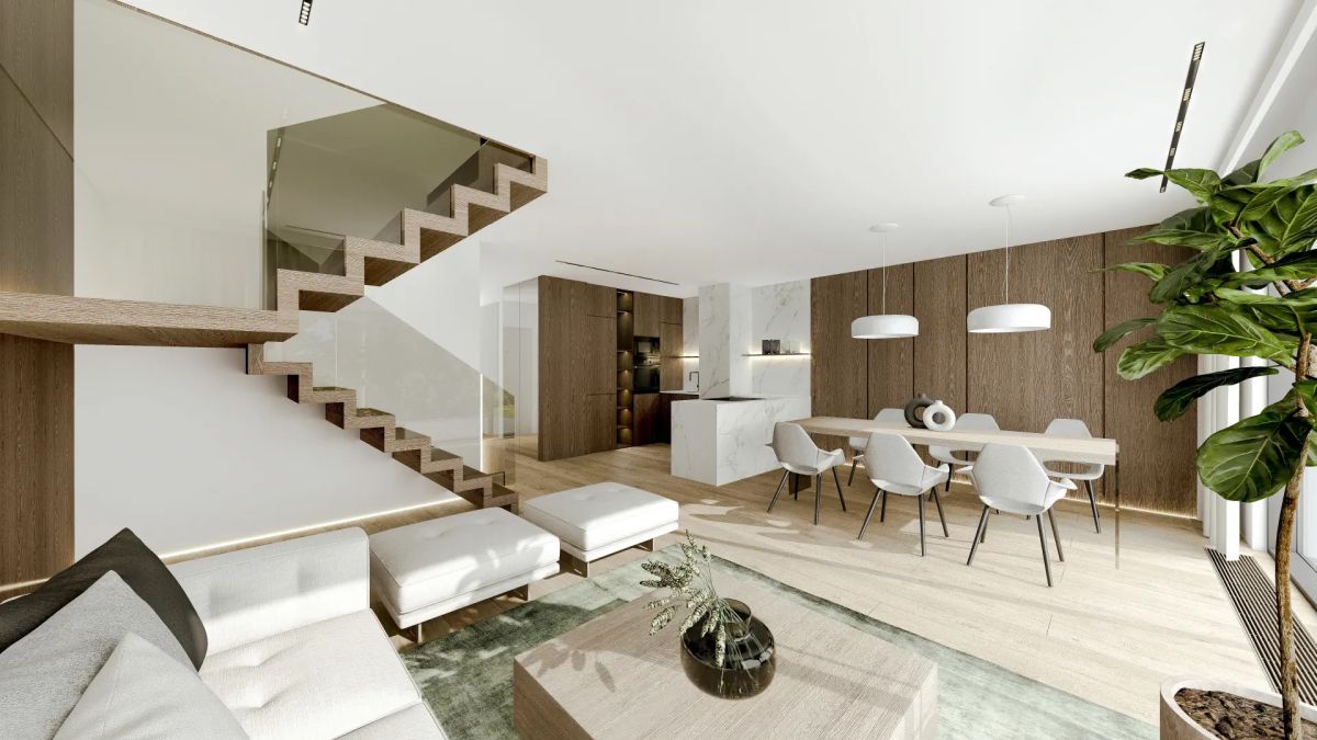 - Kameralna inwestycja z nowoczesną, minimalistyczną architekturą obejmuje tylko 8 dwupoziomowych apartamentów w 4 budynkach, zapewniając prywatność i spokojny charakter.