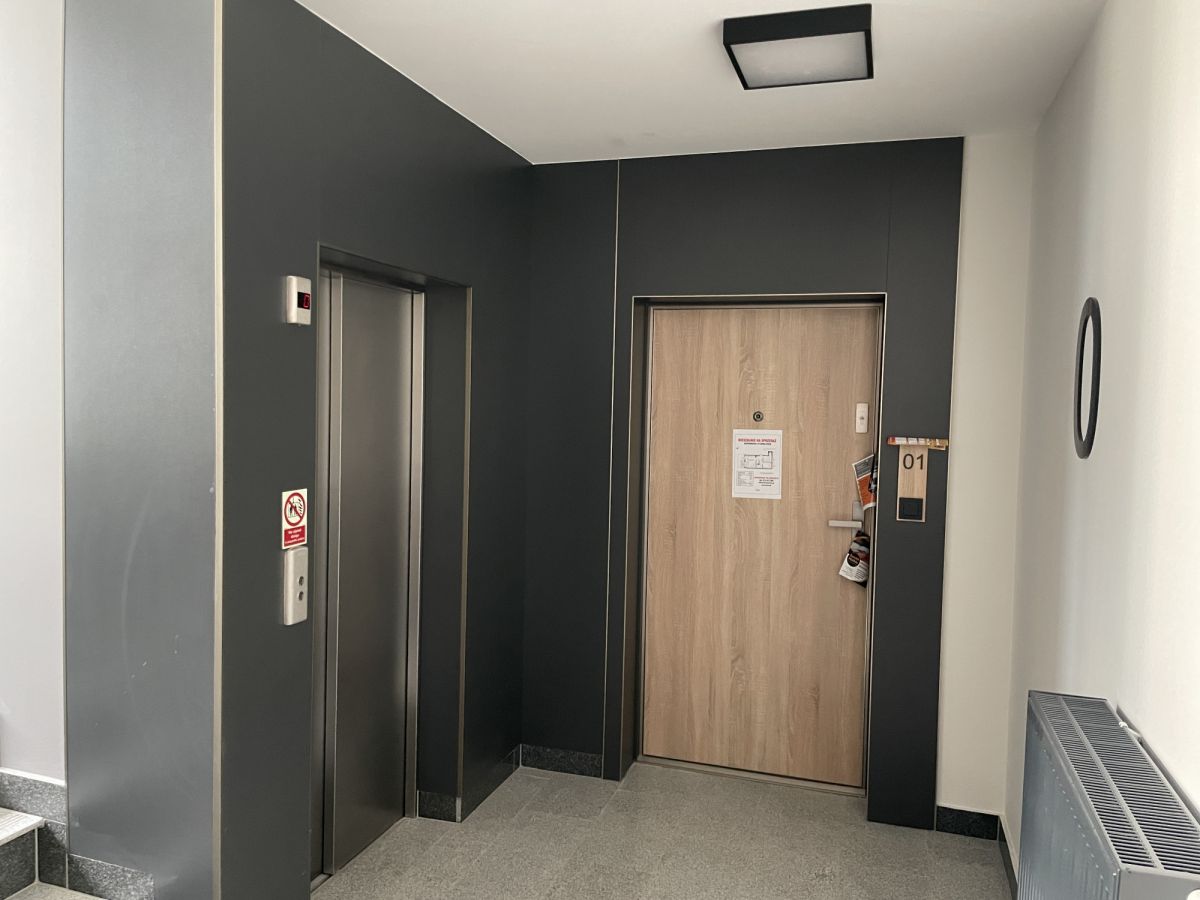 - Wysoki standard mieszkań: Murowane ściany działowe, Balustrady balkonowe wypełnione szkłem, Ściany i sufity szpachlowane i malowane na biało, Parapety wewnętrzne wykonane z granitu.