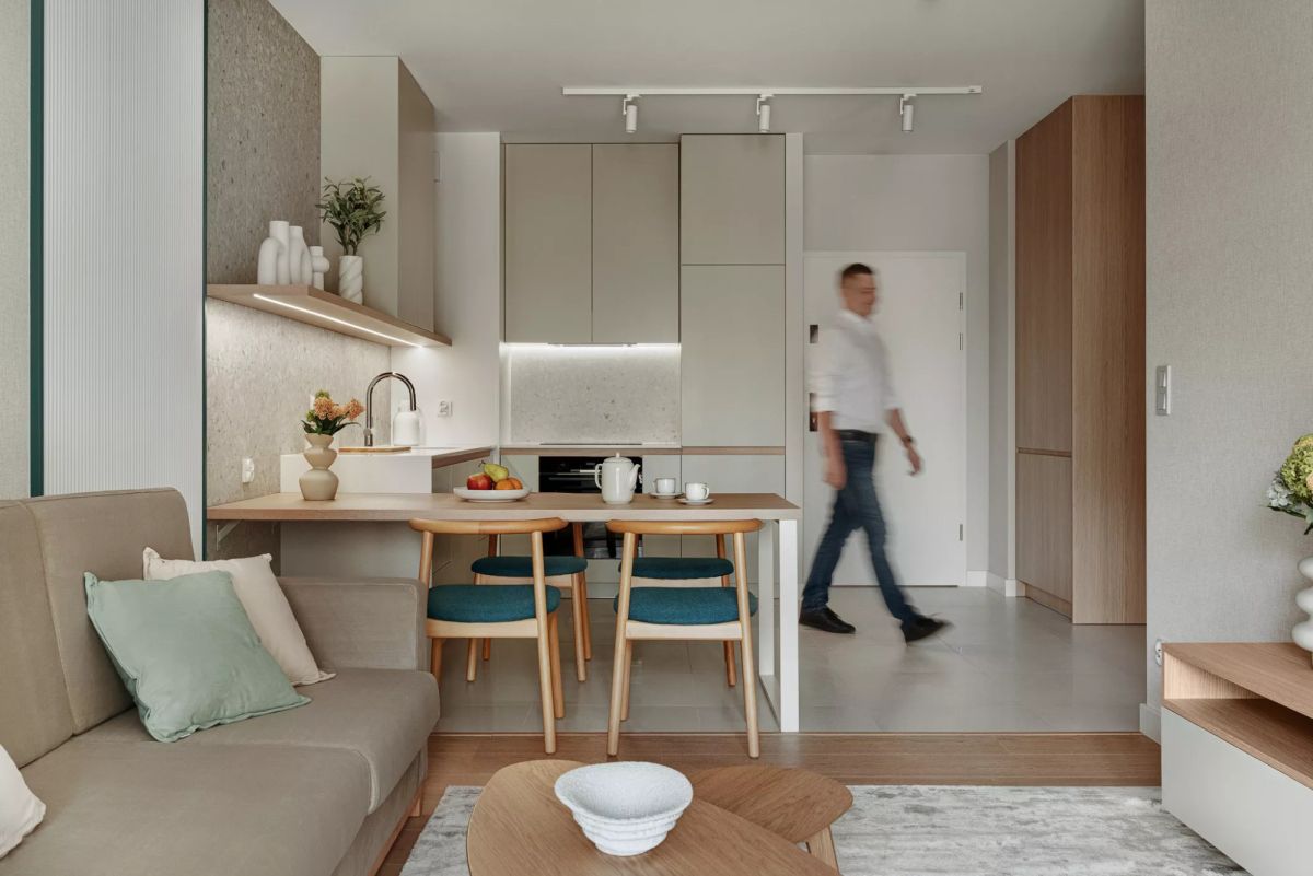 - salon z aneksem kuchennym,