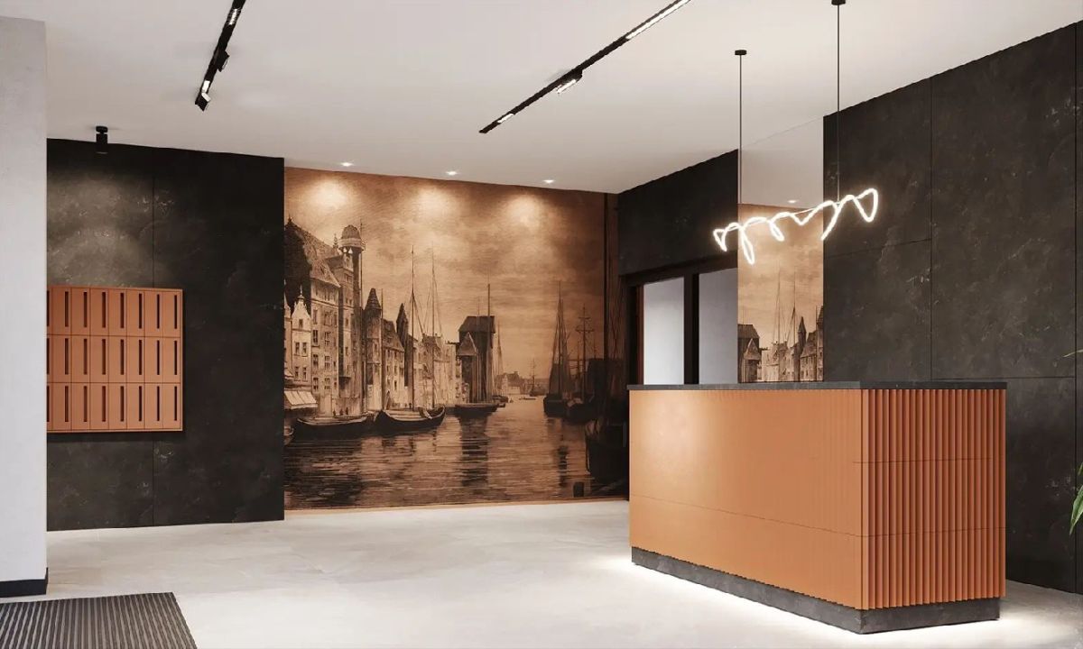 - Nowoczesna architektura z elementami industrialnymi oraz materiałami nawiązującymi do ceglanego Gdańska.